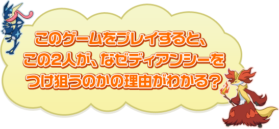そんなとき、ディアンシーはサトシとピカチュウに出会い、聖なる力を求めて「生命のポケモン」ゼルネアスを探す旅に出る。