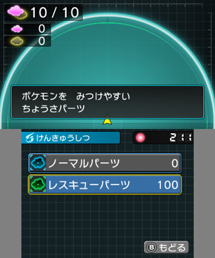 ちょうさパーツには、ポケモンや道具が見つけやすくなるものもある。キミの目的に合ったパーツを選ぼう!