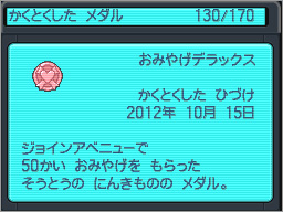 ジョインアベニューにやって来たプレイヤーに話しかけると、おみやげをもらえることがある。便利な道具がもらえて、もらったおみやげの数によってメダルが手に入り、街も発展する。いいことずくめなのだ!