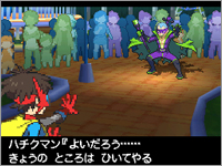 ホミカのパパと対決するのはハチクマン。『ポケットモンスターブラック・ホワイト』のジムリーダーだったハチクと関係があるのだろうか・・・。