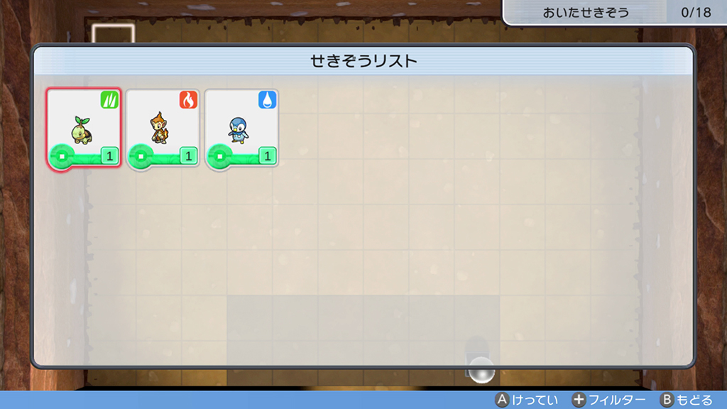 ※受け取った「ポケモンの石像」は、地下大洞窟の自分のひみつきちの「石像リスト」に入っています。