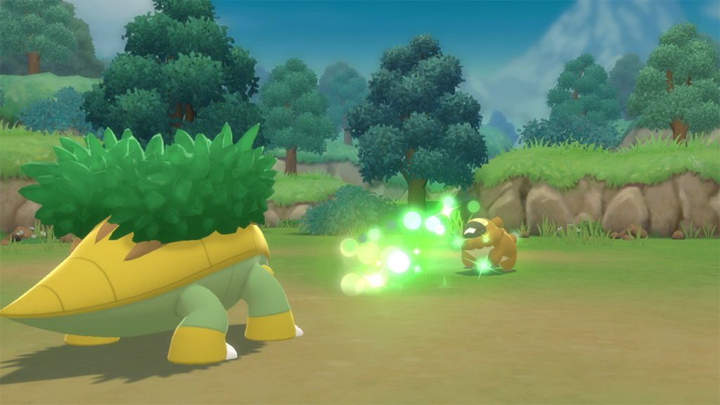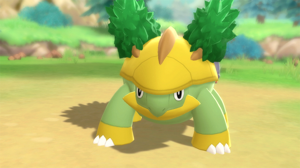 它的甲壳是泥土变硬后形成的。有些宝可梦会来啄食甲壳上树木所结的果子。