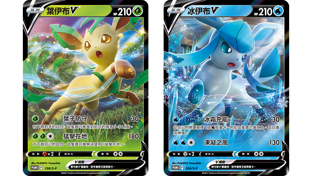 ※搶先購買特典的特典卡「葉伊布V」、「冰伊布V」與一般特典卡相同,有可能會在其他寶可夢集換式卡牌遊戲商品中重新收錄相同能力的卡牌。