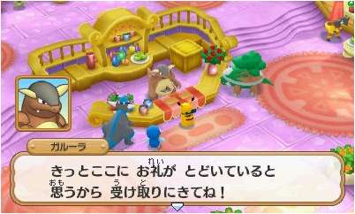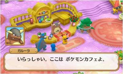 ガルーラが店主のカフェ。ガルーラに話しかけると、ポケモンの悩みを解決したときにもらったお礼を受け取ることができるよ!