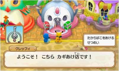クレッフィが店主のお店。ダンジョンの中で手に入る宝箱の中身を取り出してくれるよ!