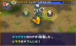 でんきタイプのシママ。わざ「でんじは」は、相手をまひ状態にすることができる。まひになった相手は、自由に動いたりわざを使ったりすることができなくなってしまうぞ。