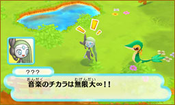 ゲーム中、とある条件をみたすことで、ポケモンパラダイスのどこかにメロエッタがやって来る。そのメロエッタの言う材料をそろえると、新たな施設「ミュージックパラダイス」が完成! 『ポケモン不思議のダンジョン ~マグナゲートと∞迷宮~』で使用されている、100曲以上の楽曲を選んで、聴くことができるぞ!