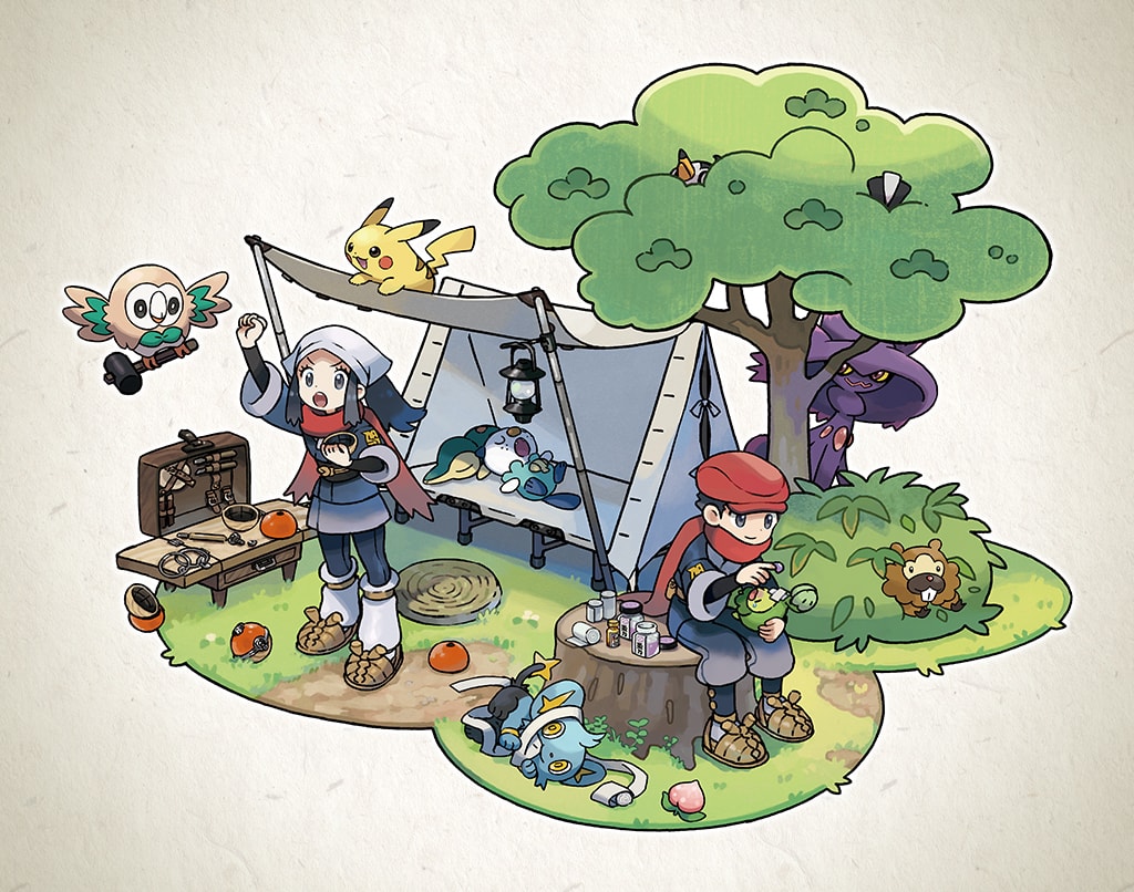 ベースキャンプは調査の出発地点となるだけでなく、調査の途中で戻ってきて手持ちのポケモンの体力を回復したり、クラフト台で「クラフト」を行って道具を作ったりして、準備を整えることができる場所だ。