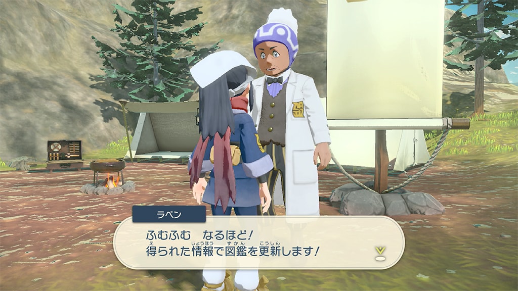 ポケモンの調査結果を博士に報告すると、図鑑に情報が追加される。