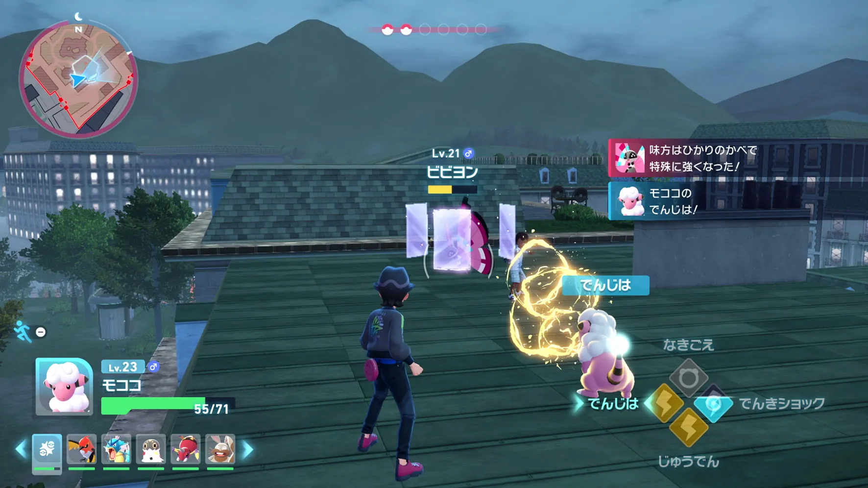 ミアレシティに夜が訪れると、街の中にバトルゾーンが出現。ひとたびそこに入れば、臨戦態勢のトレーナーとポケモンたちが、勝負の相手を探して目を光らせています。