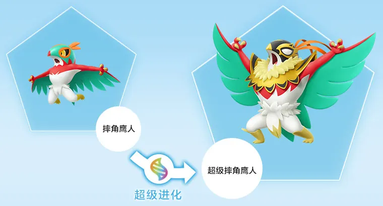 超级进化前有时会因沉迷炫耀大招而产生破绽,但在对自己的耐力有了信心后,它开始变本加厉地向对战对手和训练家反复展示自我。举起双手,展开羽翼,把自身的美丽与魁梧的胸肌不断地展示给四面八方。