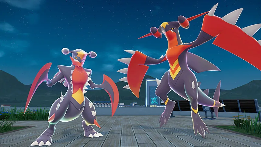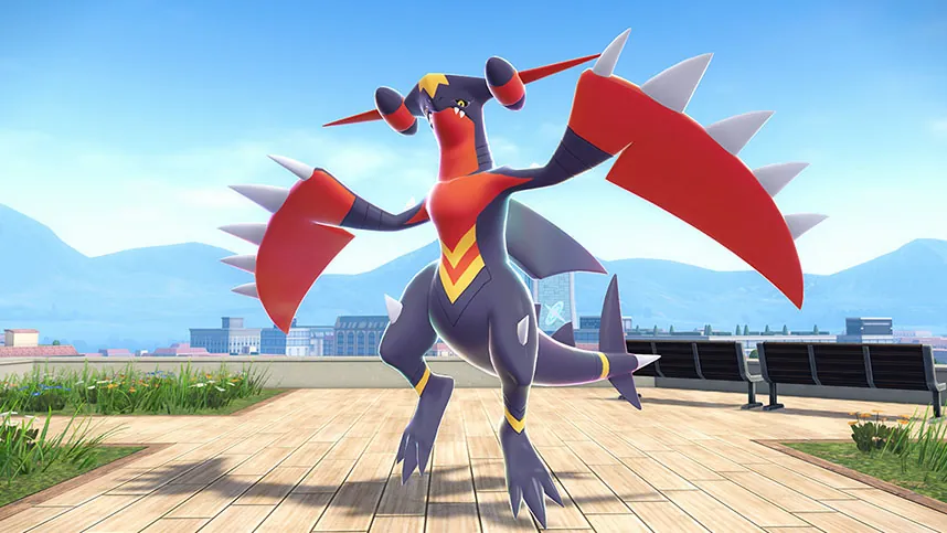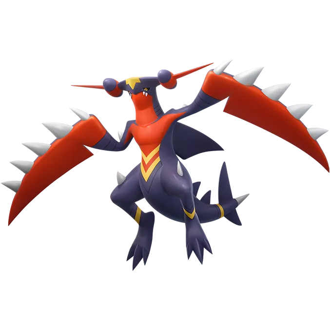 メガシンカ前とは異なり、常時浮遊する姿になります。翼が巨大化し、その正面には大きく禍々しい爪が複数出現します。