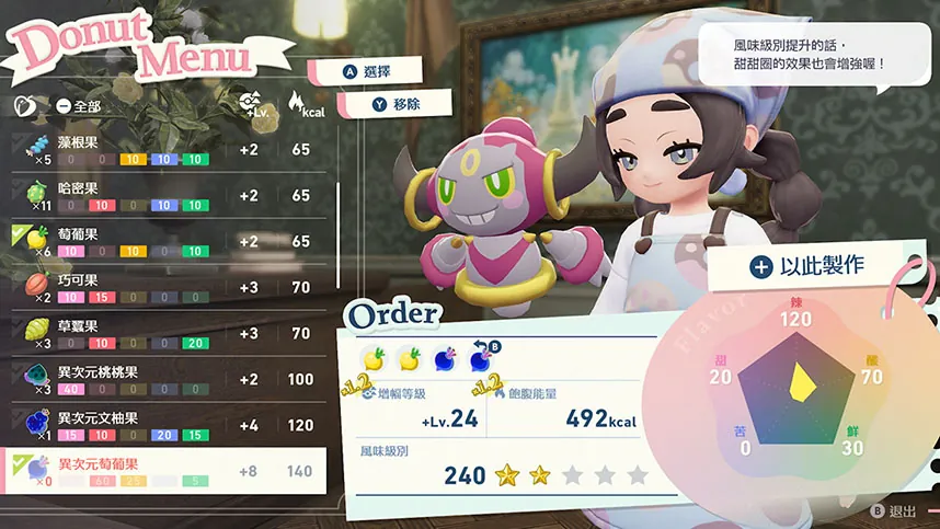 給胡帕的甜甜圈會根據製作時使用的樹果產生各種效果,