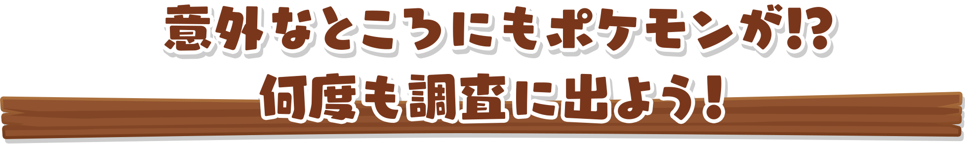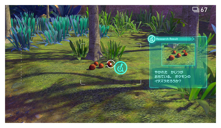 調査中は、360度すべてがシャッターチャンス。ポケモンは、目立たないところでひっそりと身を隠していたり、突然空から現れたりすることもある。何度も調査を重ね、すみずみまでポケモンを探してみよう。
