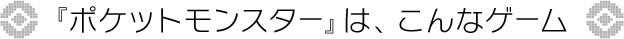『ポケットモンスター』シリーズとは、プレイヤー自身が主人公となり、ポケットモンスター(略してポケモン)という不思議な生き物たちとともに冒険を進めていく、ロールプレイングゲーム(RPG)だぞ! ストーリーを1人で楽しむだけでなく、友だちといっしょに、ポケモンを交換したり対戦をしたりして楽しむことができるのも、ポケモンの大きな特徴の1つだ。