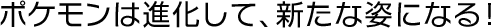 バトルをすることでポケモンはレベルアップし、より強くなる。ポケモンの中には、成長したり、ある条件を満たしたりすることで「進化」をして、その姿を変えるポケモンもいる! 進化したポケモンは、それまでと姿が変わり、能力も飛躍的に高くなるぞ!