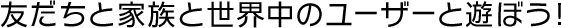 自分が捕まえたポケモンを、友だちや家族、そのほかのプレイヤーと交換したり、バトルを楽しんだりすることができるぞ! インターネット通信を使うことで、国内だけでなく、海外のユーザーとつながることも。「ポケモン」で、世界中に友だちの輪が広がるぞ!