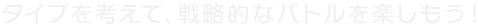 ポケモンや、ポケモンの覚える技には「タイプ」があり、相手のポケモンのタイプや使う技のタイプの相性によって、大きなダメージを与えたり、反対にダメージが減ったりすることがあるぞ!