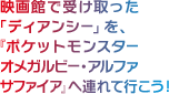 劇場にて『ポケットモンスター X・Y』で受け取った「ディアンシー」を、2014年11月21日(金)発売予定(※日本国内)の『ポケットモンスター オメガルビー』『ポケットモンスター アルファサファイア』に連れて行くと、「ディアンシー」を「メガディアンシー」にメガシンカさせることができます。