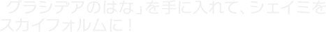 朝~夕方に、シェイミに「グラシデアのはな」を使うと、スカイフォルムにフォルムチェンジします。