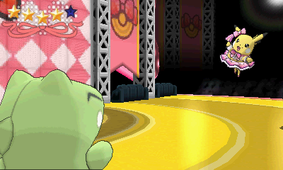 ポケモンの見た目を競う審査。ポケモンのコンディションを高めておくと、人気が高まる!