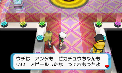出場前に受付横の会場の準備をする人に話しかければ、なんと実際の風景を背景にして撮影することもできる! ポケモンとベストショットを撮ろう!