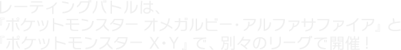 レーティングバトルは、『ポケットモンスター オメガルビー・アルファサファイア』と、『ポケットモンスター X・Y』で別々のリーグで開催!