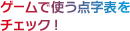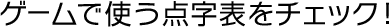 ゲームで使う点字表と社会福祉法人日本点字図書館の理事長・田中徹二さんのメッセージを掲載。
