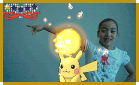 派手な衣装に身を包んだピカチュウが立つステージは、何かのコンテスト会場!?
