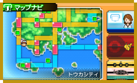 「マップナビ」は、地図上に存在するさまざまな情報を、その場で簡単に調べることができるぞ。自分のいる位置情報はもちろん、各街や施設、ポケモンの分布、トレーナーの情報、ひみつきちのありか・・・