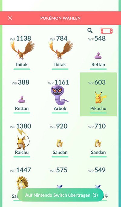 ④ Wähle die Pokémon aus, die du übertragen möchtest.