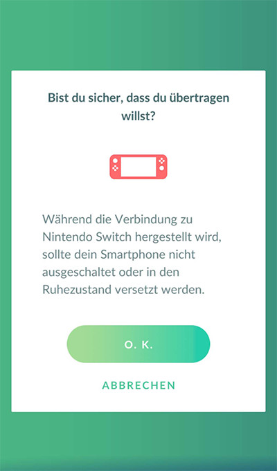 ⑤ Die Frage „Möchtest du wirklich Pokémon auf Nintendo Switch übertragen?“ erscheint. Wähle „Ja“ aus.