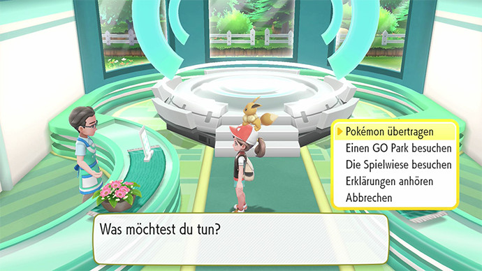 2.Folge diesen Schritten, um die Pokémon in deiner Ausgabe von Pokémon: Let’s Go, Pikachu! oder Pokémon: Let’s Go, Evoli! zu erhalten