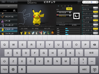 ポケモンの名前や図鑑番号を入れて、フリーワード検索が可能です。