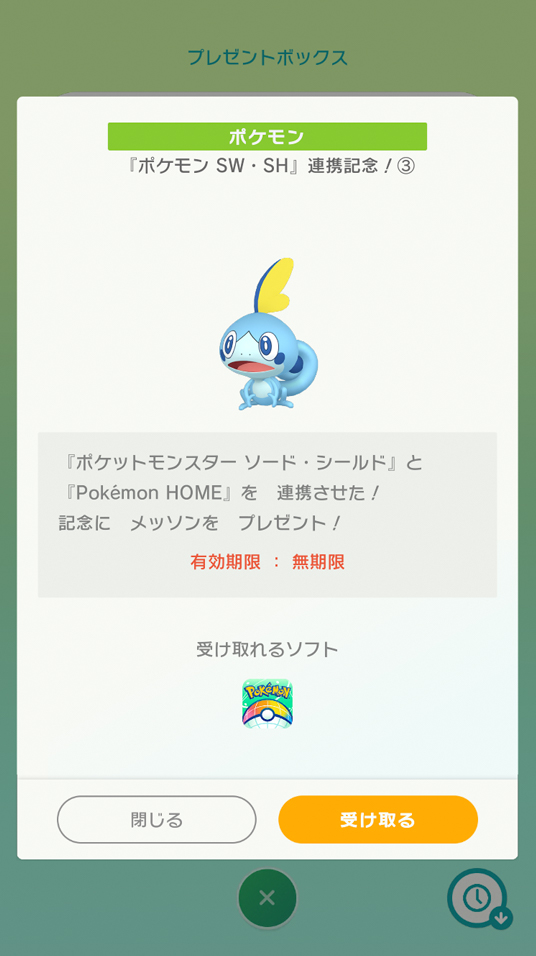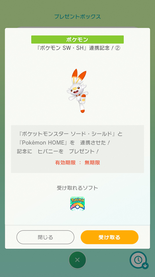 「受け取る」を選択すると、『Pokémon HOME』の