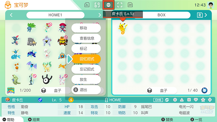 从《Pokémon HOME》将宝可梦送到各软件去时,可让该宝可梦从至今为止学会的招式(※)中,任意回忆起在要送去的软件中可学会的招式。由此即可让宝可梦事先学会可回忆起的招式,之后再将其送到各软件去。(※)部分招式除外。