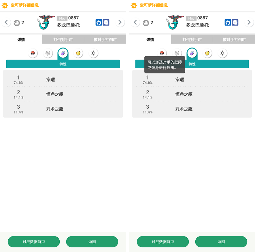 在宝可梦的排行榜中还可以确认招式、特性和持有物等相关信息。