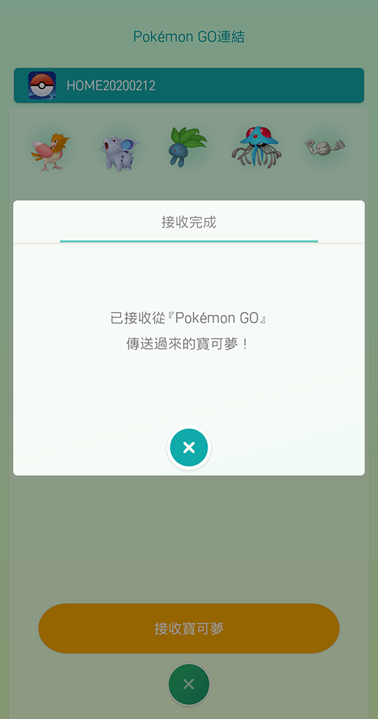 - 若未進行「接收」,將無法從『Pokémon GO』傳送其他寶可夢到『Pokémon HOME』。
