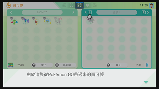 - 只是完成從『Pokémon GO』傳送寶可夢的操作,寶可夢還不會反映在『Pokémon HOME』的寶可夢盒中。需進行步驟3在『Pokémon HOME』中的接收操作。