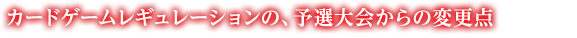 カードゲームの決勝大会では、予選大会からレギュレーションに一部変更がありますので、ご注意ください。
