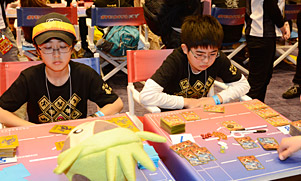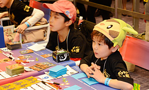 カードゲームの決勝戦では、序盤はにしむらくんが多くのカードを繰り出し優勢に。しかし、はせがわくんは少ないエネルギーで大きなダメージを与えられるワザで状況を逆転、見事勝利を手にしたよ!