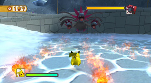 たくさんのポケモンたちの攻撃をかわし、時間内に特定の場所に到達しないといけないバトルも登場!