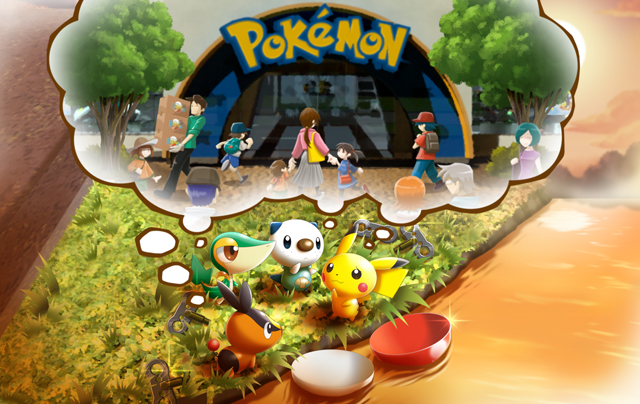 ポケモンショップのある街が、冒険の舞台。ポケモンショップを目指して、様々なエリアをクリアしていこう。最初に挑戦するのは、「キラキラ遊園地」エリアだよ!