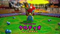 ピカチュウたちの前に最初に立ちはだかったのは、ケルディオ。みずタイプのポケモンたちを率いているよ。