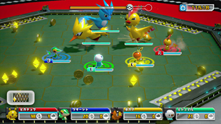 ロケットからは、大量のポケモンたちが飛び出してくる。放っておくとバトルステージは敵ポケモンでいっぱいになってしまうので、その前に、ロケットを破壊して敵ポケモンの登場を止めよう!