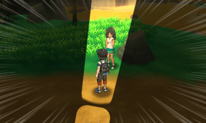 草むらなどを歩いていると、野生のポケモンが突然飛び出してきて、そのままバトルになる。