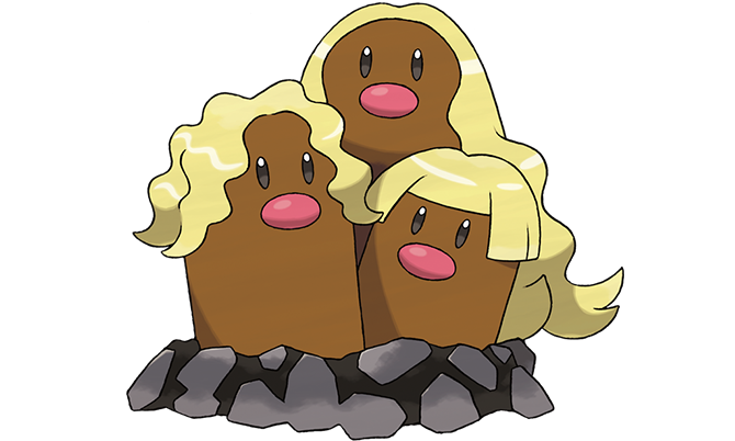 アローラ地方においては、大地の神様の化身としてあがめられ、とても大事にされているポケモン。そのため、穴から顔を出したダグトリオに出くわすと、アローラの人々は地面に膝をつき、深い礼を捧げる。