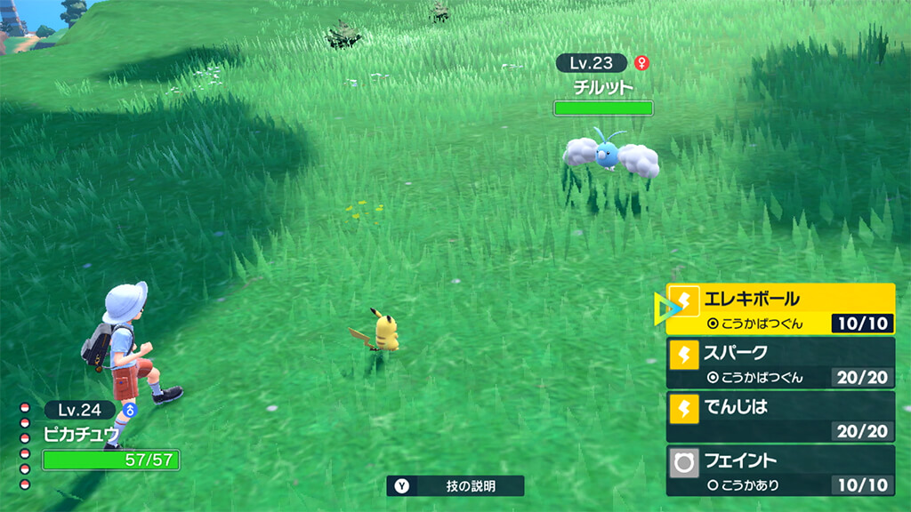 広大なフィールドを駆け巡ると、様々なポケモンが生息している姿を草むらや森、洞窟などで見ることができます。野生のポケモンは、バトル中にモンスターボールを投げることで捕まえることができます。バトル以外にも、他のプレイヤーとのポケモン交換で、新たなポケモンを仲間にすることができます。