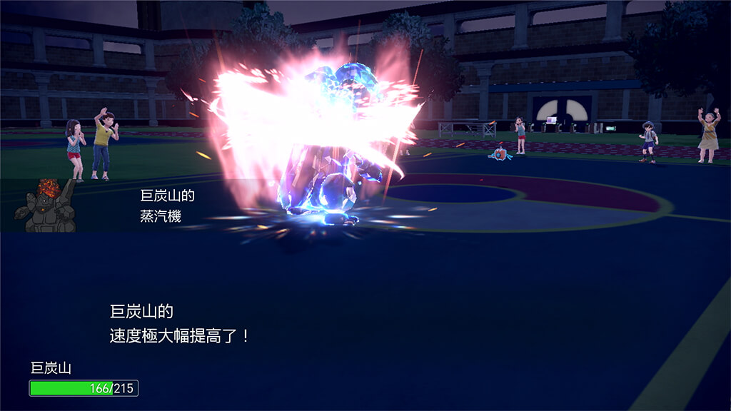 太晶屬性為水屬性的巨炭山搭配上特性「蒸汽機」,能減少水屬性招式的傷害並提高速度。