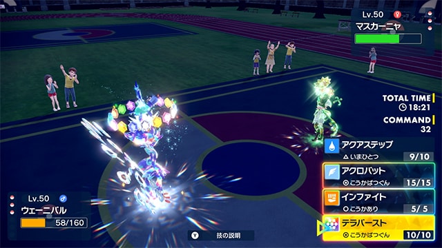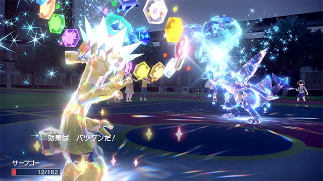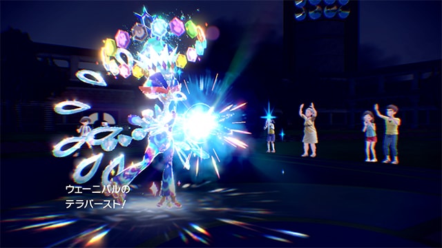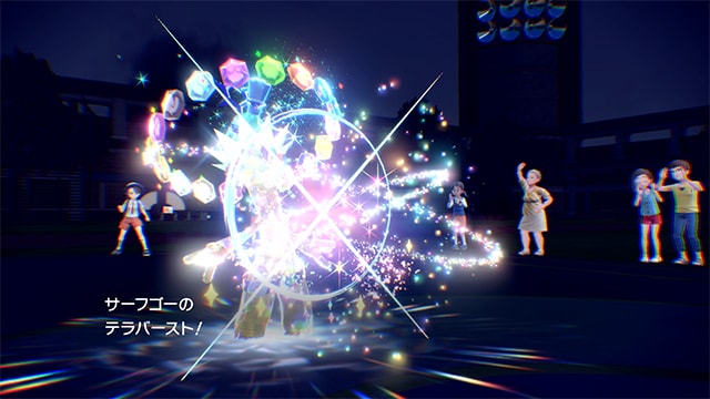 テラスタイプ「ステラ」の状態で「テラバースト」を放つと、他のテラスタイプで放ったときよりも威力が高くなります。さらに、テラスタルしたポケモンに繰り出せば、効果がバツグンになります。その一方で、技を使った後、自分の「こうげき」と「とくこう」が下がります。